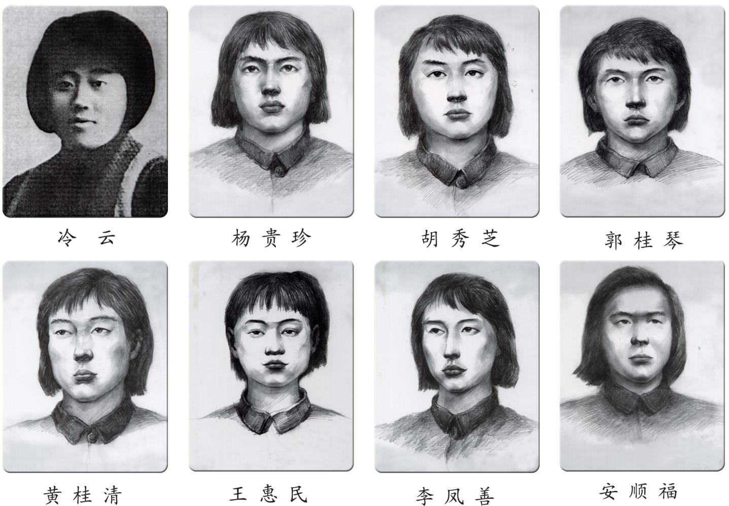 請(qǐng)記住:她們是共產(chǎn)黨員、抗聯(lián)二路軍五軍婦女團(tuán)指導(dǎo)員冷云,共產(chǎn)黨員、五軍婦女團(tuán)班長(zhǎng)楊貴珍、胡秀芝,五軍婦女團(tuán)戰(zhàn)士郭桂琴、黃桂清、王惠民、李鳳善(朝鮮族)和二路軍第四軍共產(chǎn)黨員、被服廠廠長(zhǎng)安順福(朝鮮族)。