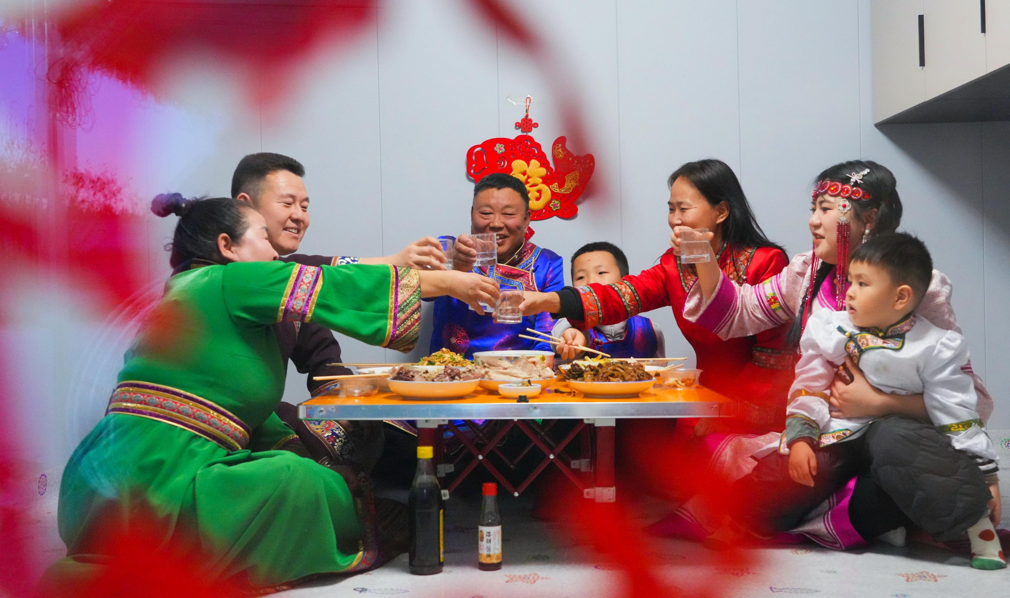 達(dá)斡爾族人將新春年味,繡進(jìn)藍(lán)白相間的袍角,包進(jìn)柳蒿芽的清香,藏進(jìn)每一個(gè)傳統(tǒng)習(xí)俗的細(xì)節(jié)中。